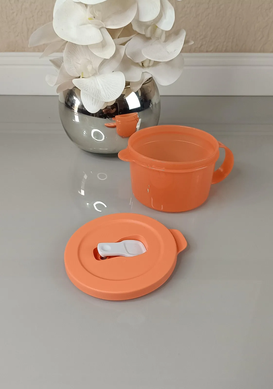 A Tupperware Caneca Cristalwave 520ml é a aliada perfeita pra quem quer praticidade na hora de esquentar e servir alimentos no micro-ondas sem bagunça e com muito mais segurança. Com um tamanho ideal para porções individuais, ela é ótima para sopas, caldos, molhos e refeições rápidas. A válvula na tampa permite que o vapor escap...