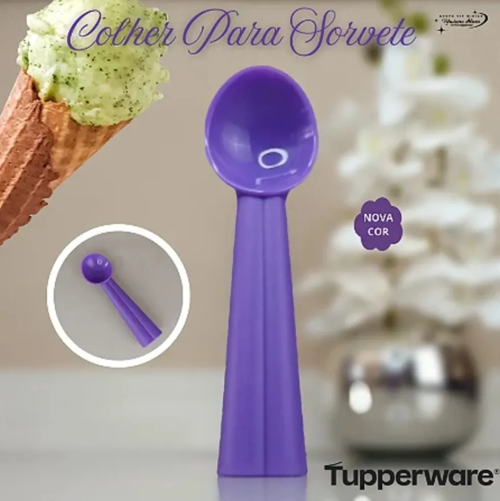 A Tupperware Colher para Sorvete Roxa é a aliada perfeita para servir sorvetes com praticidade e estilo. Seu design ergonômico e moderno facilita o manuseio, enquanto a estrutura resistente permite moldar porções perfeitas, mesmo com sorvetes mais firmes. Com um toque vibrante na cor roxa, ela é indispensável para momentos deliciosos com a família e amigos.